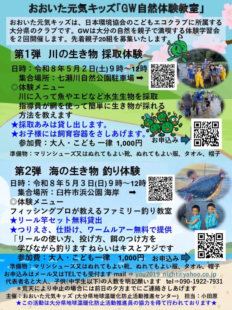 おおいた元気キッズ ゴールデンウィーク 生物多様と海釣り体験会 2026.04.15 Post Share Hatena Pocket RSS feedly Pin it この記事のタイトルとURLをコピーする Warning: Undefined array key "file" in /home/kawanoden/occca-decokatsu.com/public_html/wp-includes/media.php on line 1788 どうぞご参加いただきますようお願いいたします。 Post Share Hatena Pocket RSS feedly Pin it デコ活チャレンジカップinおおいた 前の記事 こどもエコフェスティバルへ参加してきました。 次の記事