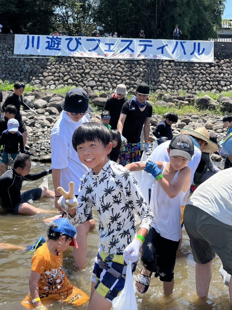 おおいた元気キッズは川遊びフェスティバルに参加し河川の魚の掴み取り体験を行いました。